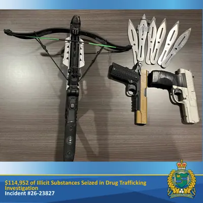 In January 2026, the Niagara Regional Police Service (NRPS) 2 District (Niagara Falls/Niagara-on-the-Lake) Street Crime Unit (SCU) began an investigation into the sale of illicit substances. A male suspect was observed to be exhibiting behaviour consistent with the illegal trafficking of drugs. On Thursday, February 26, 2026, at approximately 3:50 PM, the accused was arrested after a brief foot pursuit.