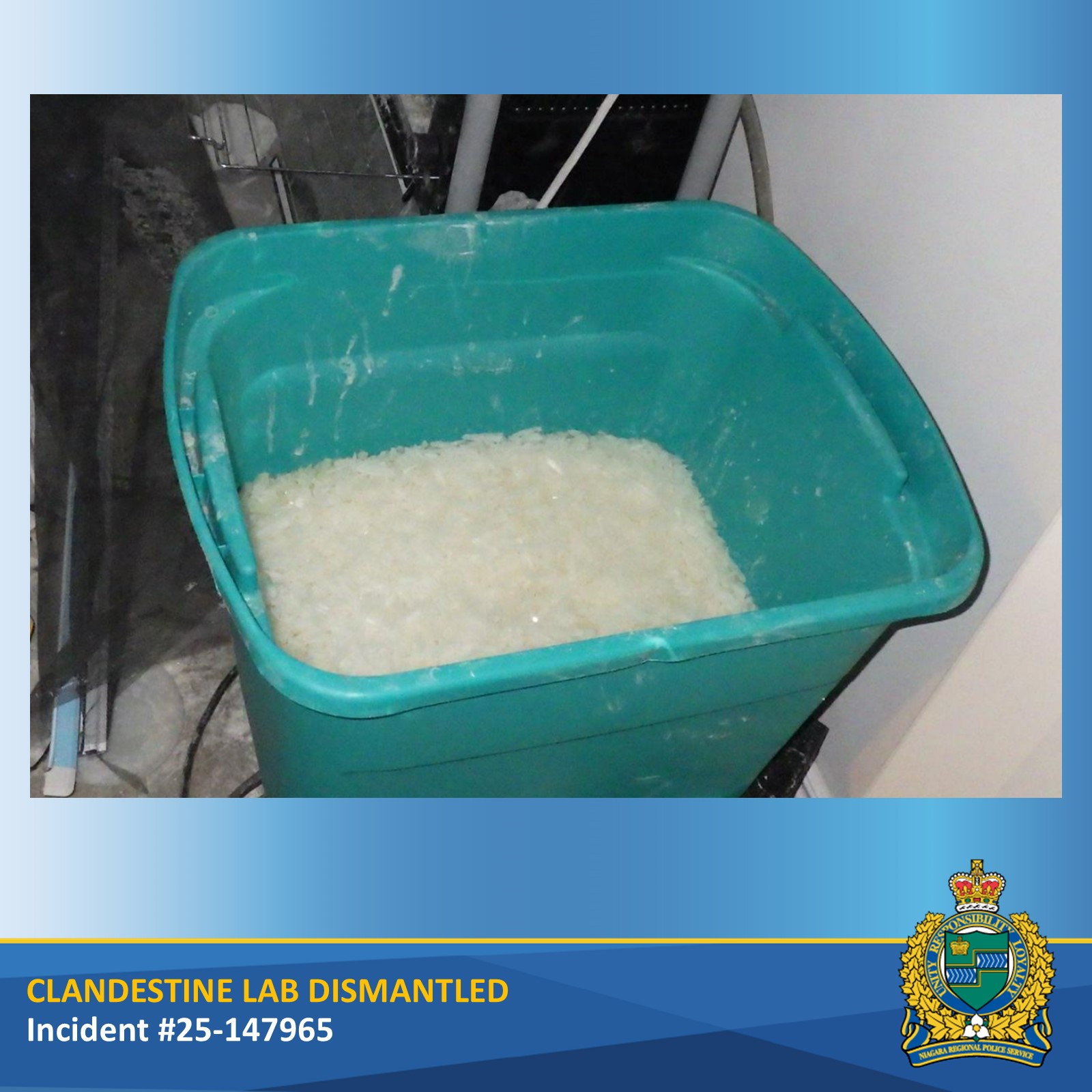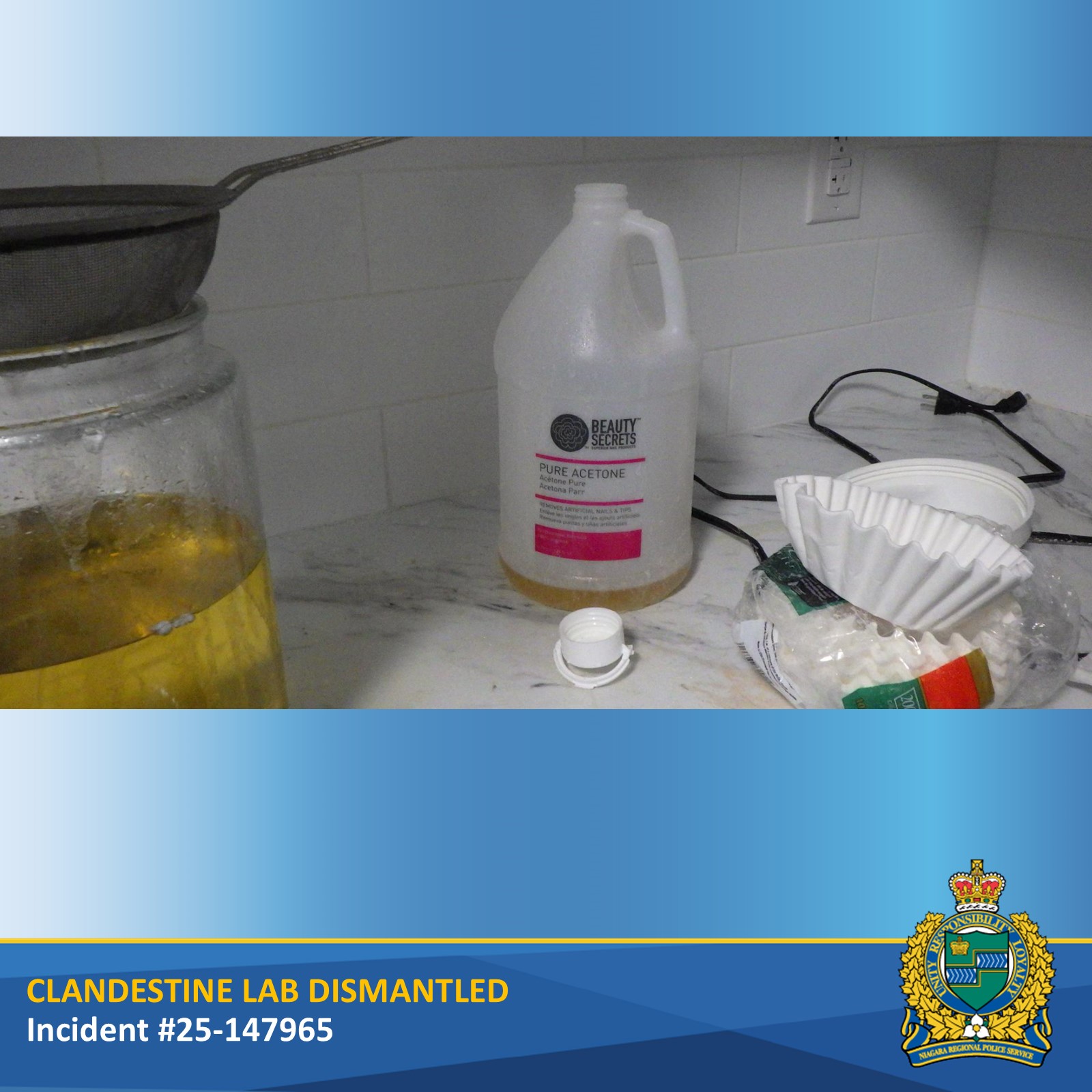 As a result, the Ontario Provincial Police (OPP) Clandestine Laboratory Investigative Response Team in conjunction the OPP UCRT Team and Durham Regional Police Synthetic Drug Officers were called in to execute the warrant and assist with dismantling the lab safely. Niagara Falls Fire Department and Niagara EMS were on standby in the area to assist with the potential hazards.