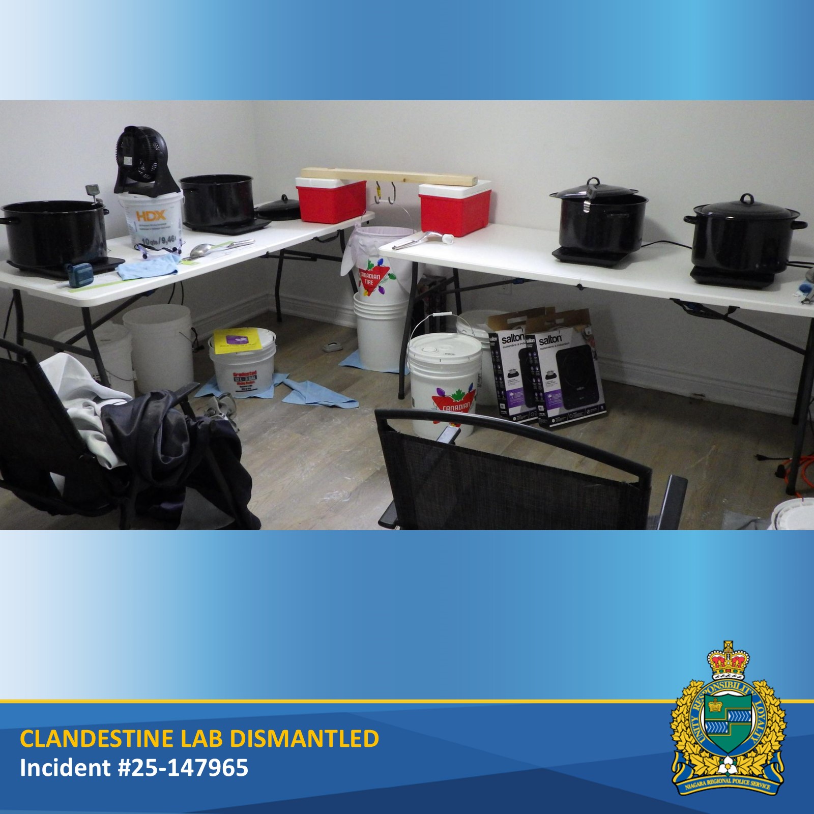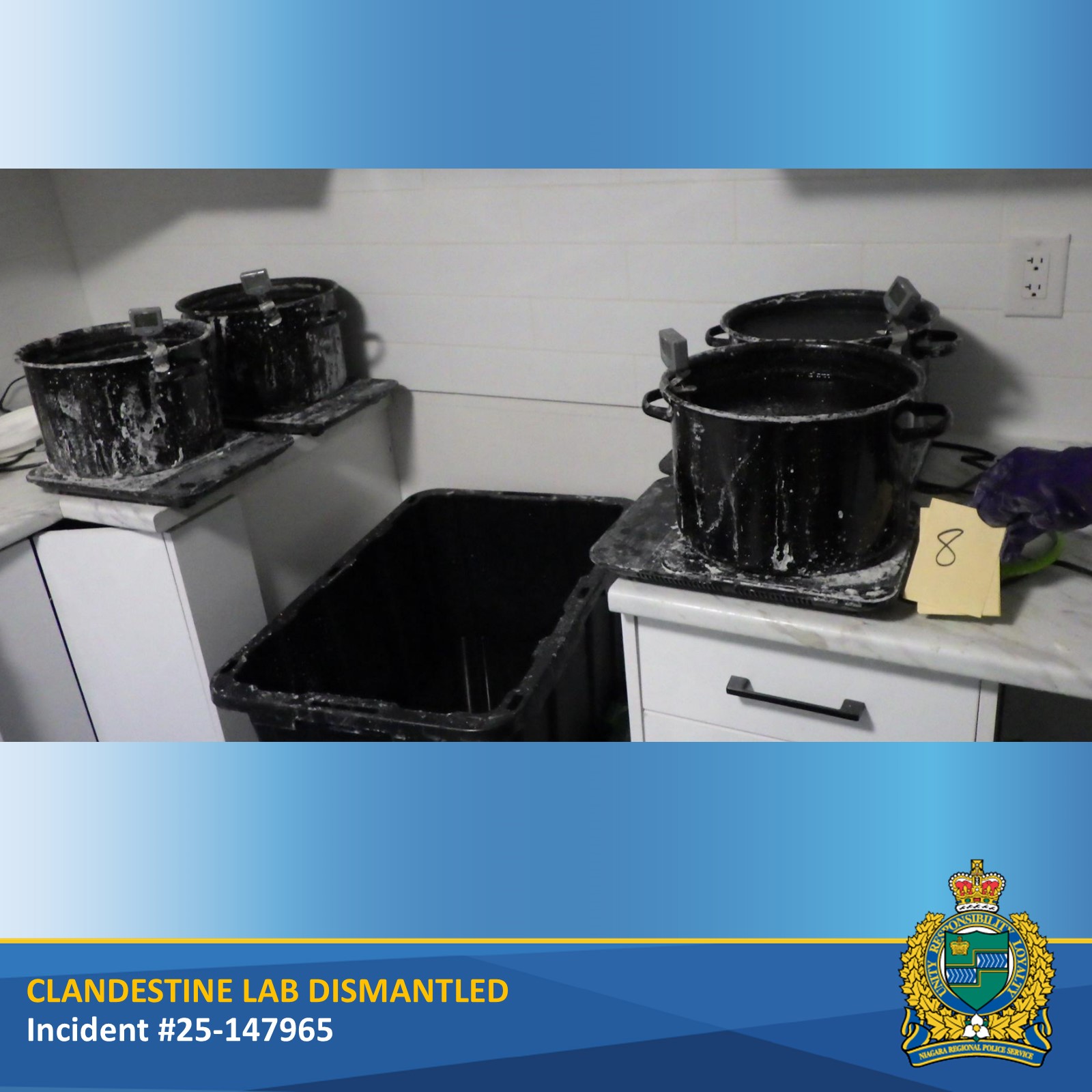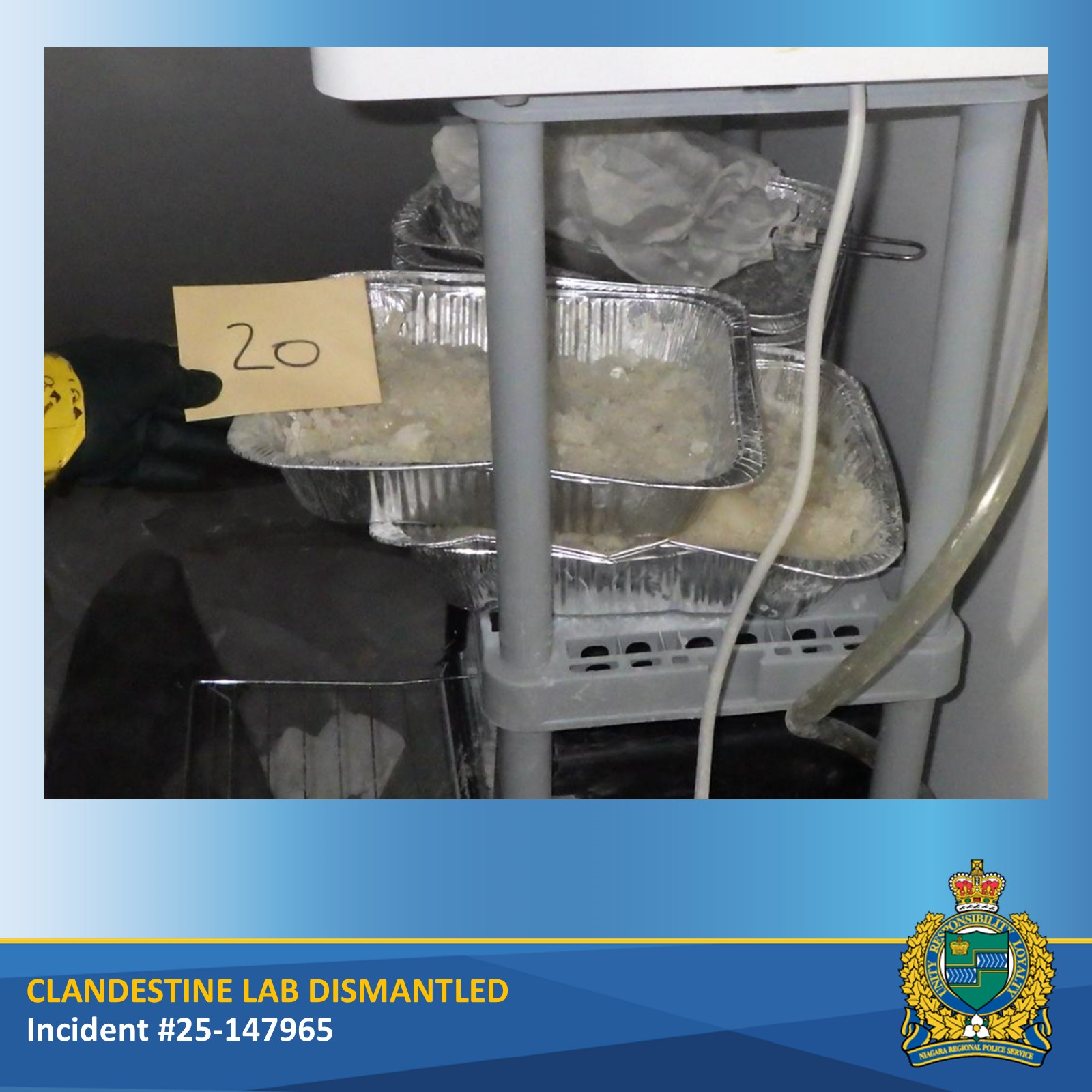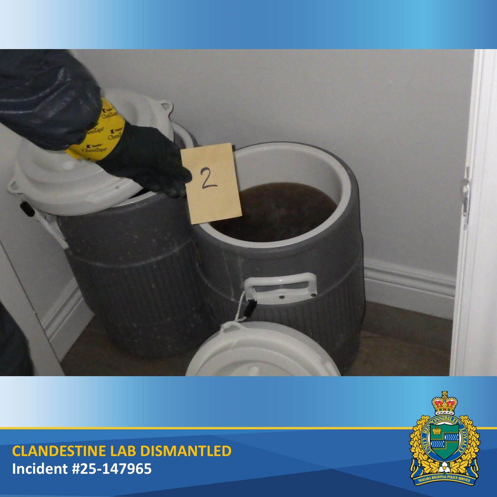 On Tuesday, December 23, 2025, Detectives with the Niagara Regional Police Service (NRPS) Major Drugs and Gangs Unit, assisted by members of the 2 District Street Crime Unit (Niagara Falls/Niagara on the Lake), obtained a Controlled Drugs and Substances Act (CDSA) search warrant for a private residence on Brookside Drive in the City of Niagara Falls. The warrant resulted in the discovery and seizure of a clandestine drug laboratory with four persons being arrested.