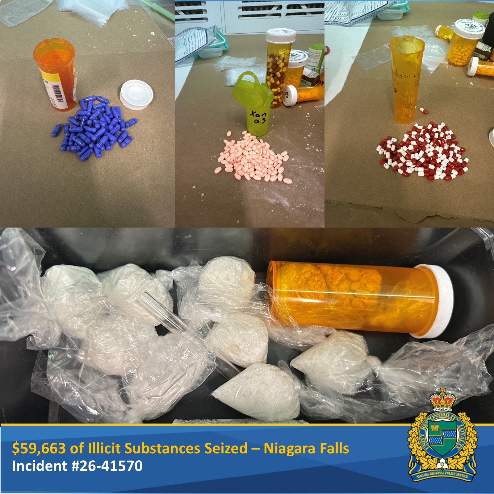 In March 2026, Niagara Regional Police Service (NRPS) 2 District (Niagara Falls/Niagara-on-the-Lake) uniform officers began an investigation into the trafficking of illegal substances by a male in the City of Niagara Falls.