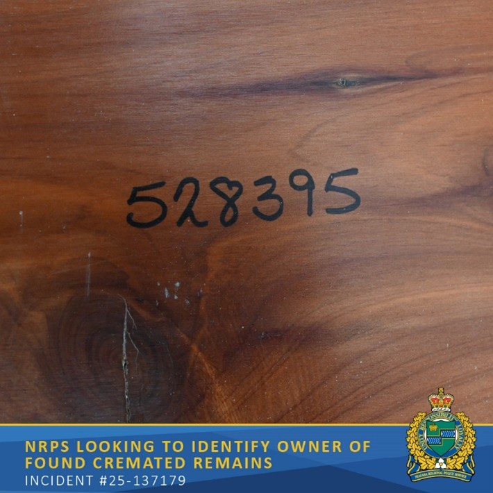 Detectives are asking for the public’s assistance in identifying who donated the urn in an attempt to return the cremated remains to their rightful owner. Any member of the public with knowledge of the cremation industry that may recognize the style of urn or 6-digit identification number is asked to contact police at (905) 688-4111, option 3, extension 1009747.