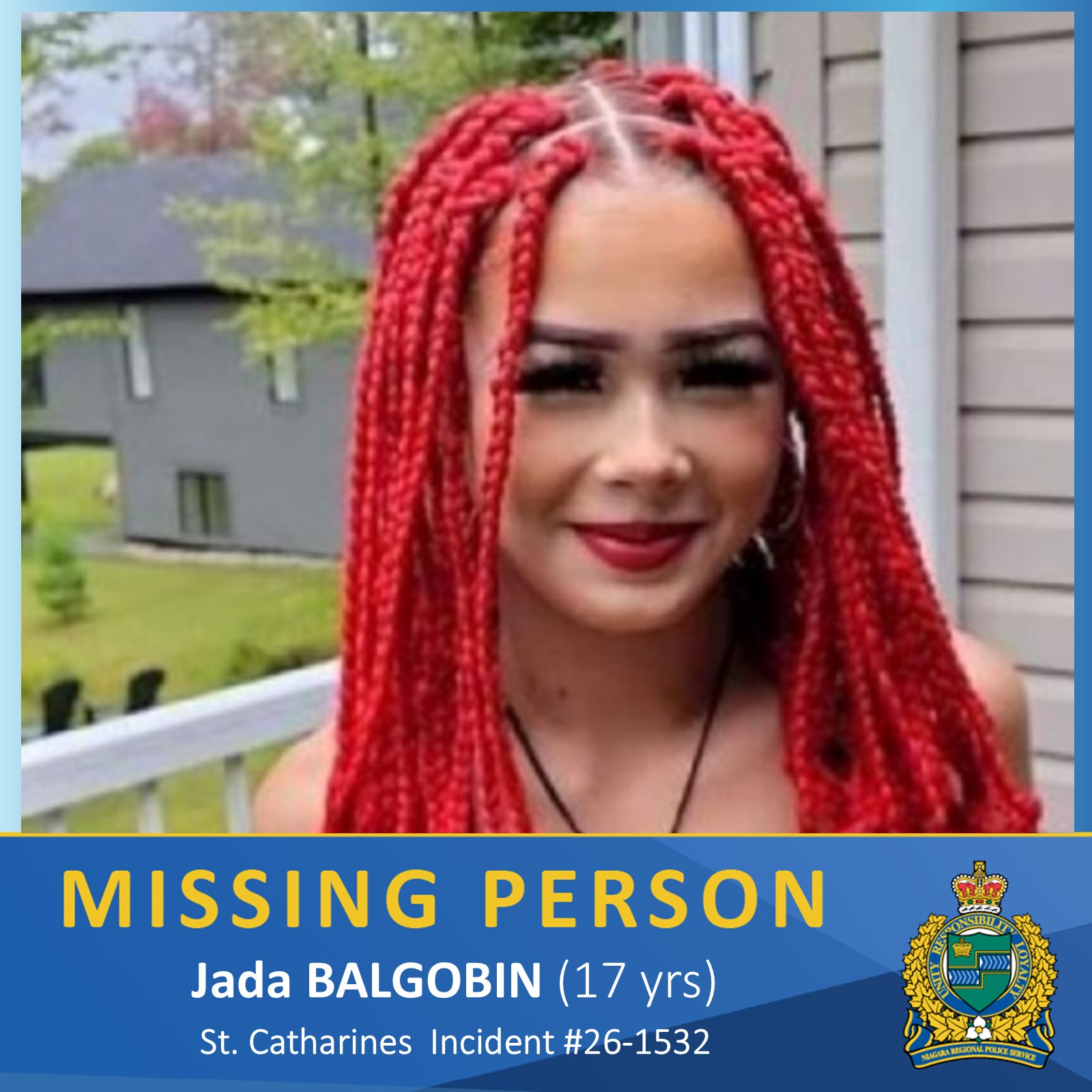 Detectives with the Niagara Regional Police Service (NRPS) 1 District (St. Catharines/Thorold) Criminal Investigations Bureau (CIB) are requesting the publics assistance in locating 17-year-old Jada BALGOBIN.