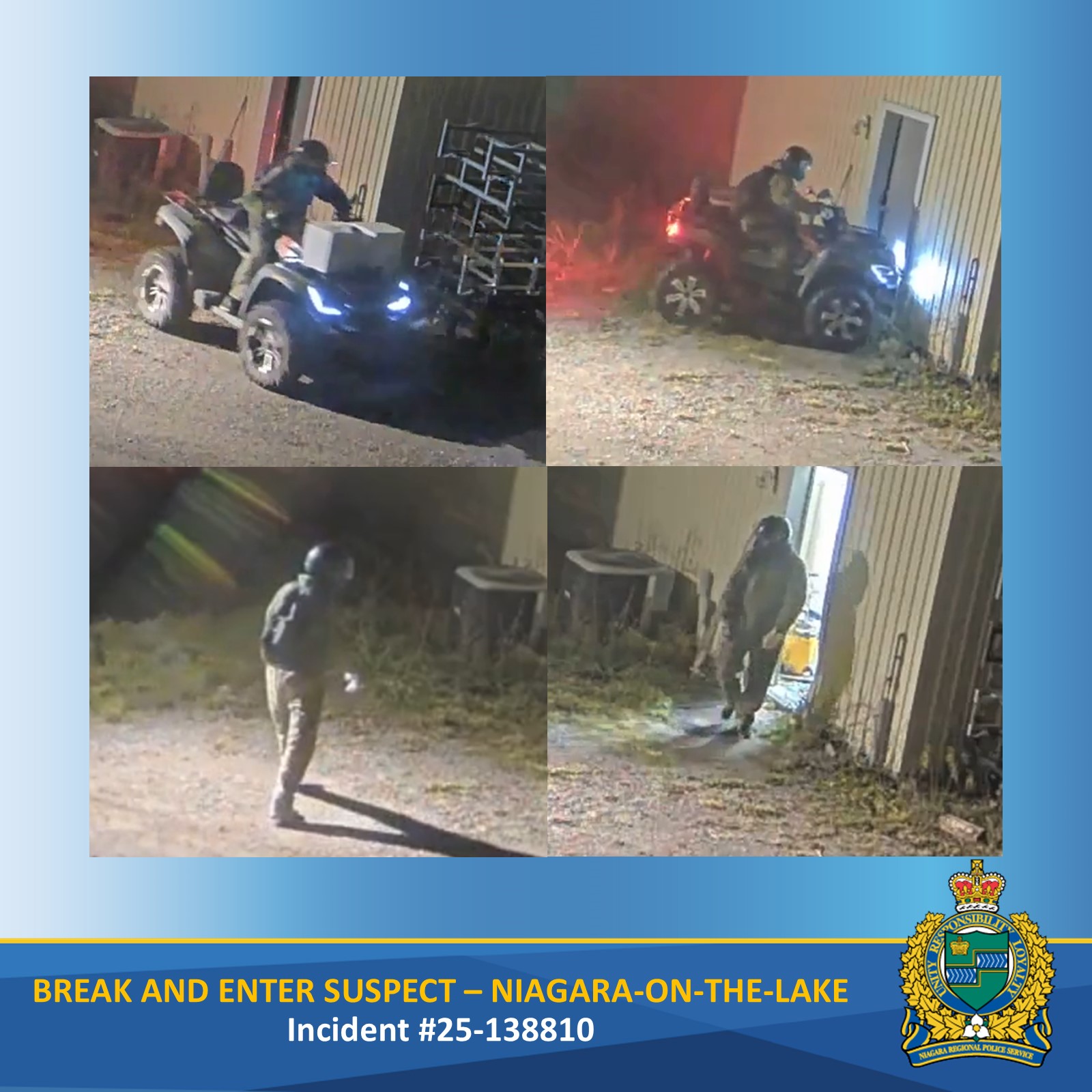 Suspect on ATV Breaks into Niagara College Winery Storage Facility