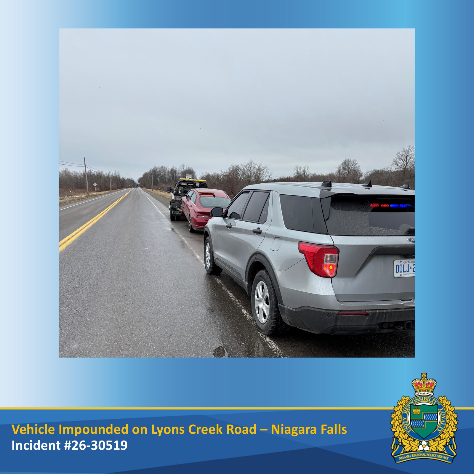On Friday March 13, 2026, at approximately 2:30 p.m. an officer with the Niagara Regional Police Service (NRPS) Traffic Enforcement Unit (TEU) conducted speed enforcement on Lyons Creek Rd in the city of Niagara Falls.