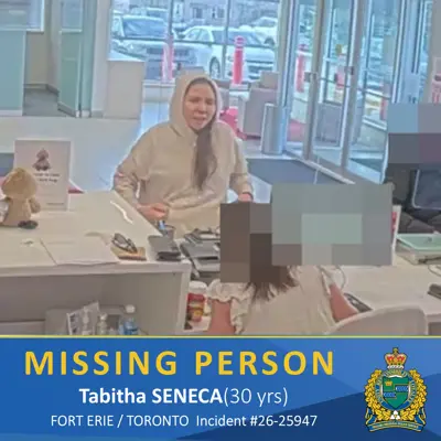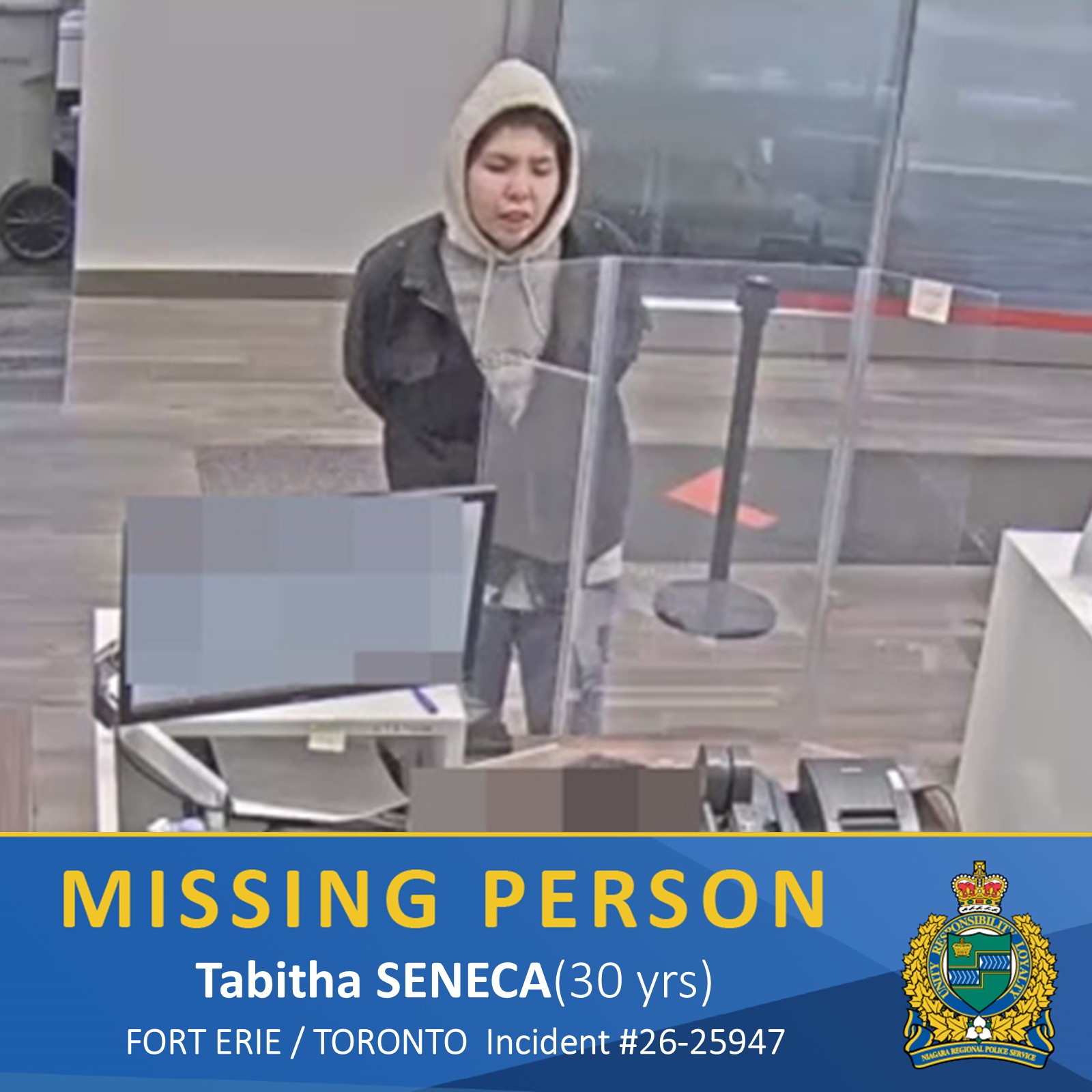 30-year-old Tabitha SENECA was reported missing on Tuesday, March 3rd, 2026, to police in Fort Erie. Their investigation revealed that SENECA was last seen in the Hwy 27 and Rexdale Boulevard area of Toronto in the evening of February 25, 2026.